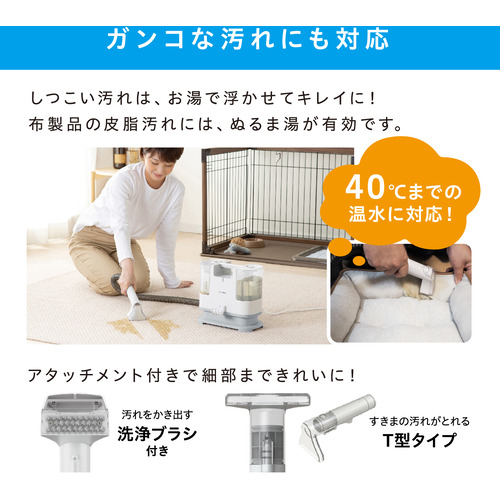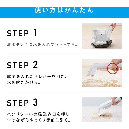 水を吹きかけ汚れを浮かせ、浮かせた汚れを水と共に吸い取ることができるリンサークリーナー