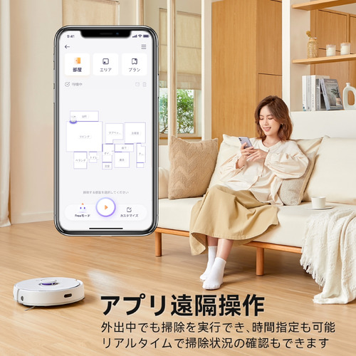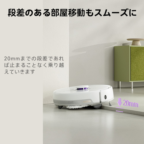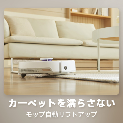 マップ内にカーペットが無い状態でも、新しいカーペットを検出しモップをリフトアップしてスイスイ登ります。(アプリで進入禁止エリアに設定することもできます)わざわざモップを取り外す必要はありません。※カーペットに対して吸引清掃をする場合は、スマートフォンとの連携が必要です。
