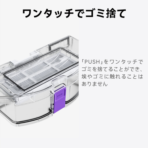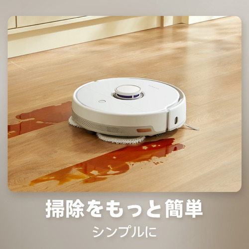 ベースステーションに搭載した大画面のタッチパネルで、スマホを使わずに吸引や水拭きをはじめマッピングやモップ洗浄乾燥といった基本的な操作を行えます。ご自宅にインターネットが無かったり、スマホや新しい機械が苦手な方でも、指一つですぐに操作していただけます。また、チャイルドロック機能を搭載しているので小さいお子様やペットが予期せぬ起動をしてしまうこともありません。