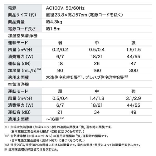 加湿空気清浄機 木造住宅和室5畳、プレハブ住宅洋室8畳