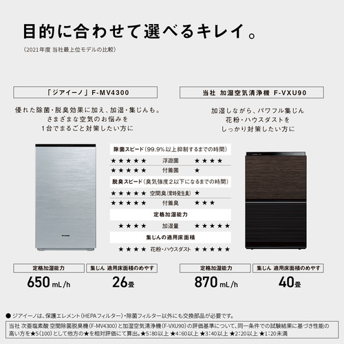 パナソニック F-MV4420-WZ 次亜塩素酸 空間除菌脱臭機 ペットとの暮らしに配慮したペットエディション マテリアルホワイト
