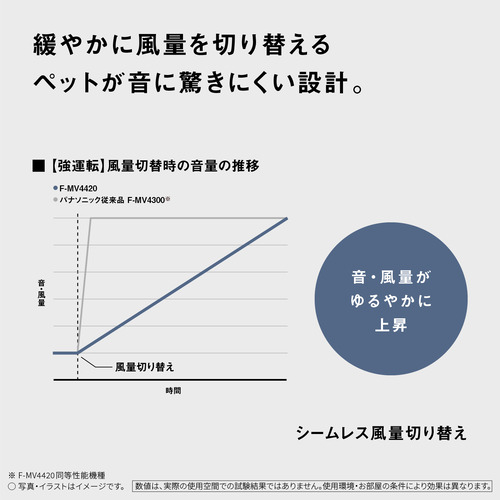 ●ワンちゃん、ネコちゃんが運転音に驚きにくい「シームレス風量切り替え運転」