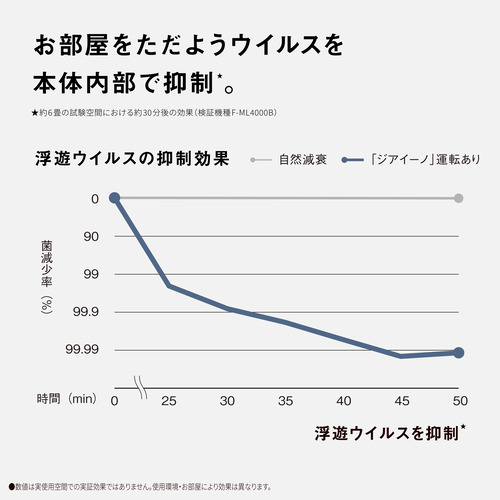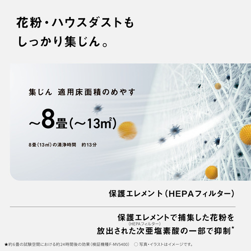8畳の清浄時間(※風量「強」・加湿「多め」運転時、「日本電機工業会規格(JEM1467)」に基づく試験方法により算出。※):30分