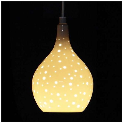 ●職人がひとつひとつ釜でていねいに焼き上げた磁器のセードを使用したLEDペンダント照明です。