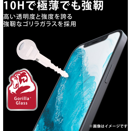 Gorilla(R)ガラスを採用した薄型・ブルーライトカットタイプのiPhone 13、iPhone 13 Pro用液晶保護ガラスです。