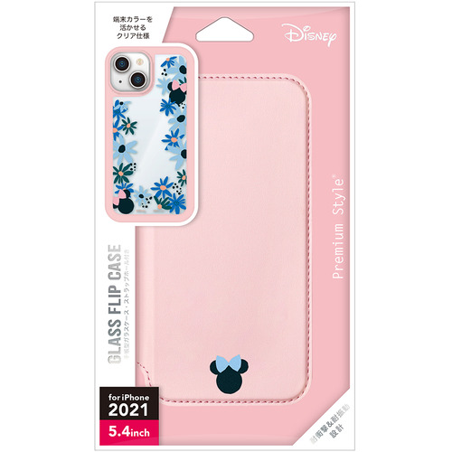 PGA PG-DGF21J02MNE iPhone 13 mini用 ガラスフリップケース Premium Style ミニーマウス