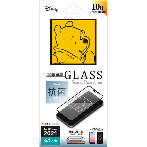 PGA PG-DGL21K04POO iPhone 13/13 Pro用 抗菌液晶全面保護ガラス Premium Style くまのプーさん