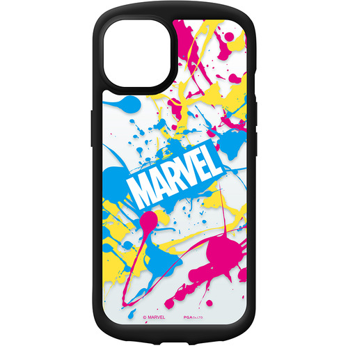 「MARVEL」デザインのiPhone本体の色を生かせるクリア仕様のiPhone 13 mini用のガラスタフケースです。