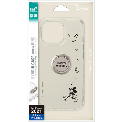 PGA PG-DPT21N07MKY iPhone 13 Pro用 リング付 抗菌ハイブリッドケース Premium Style ミッキーマウス
