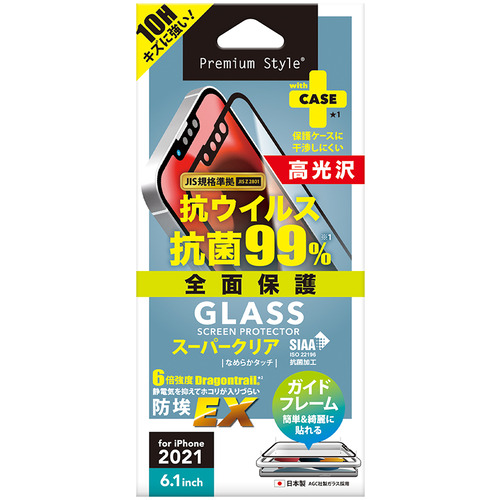 PGA PG-21KGLK01FCL iPhone 13 13 Pro用 抗菌 抗ウイルス液晶全面保護ガラス Premium Style スーパークリア