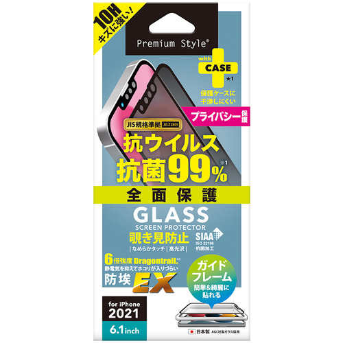 PGA PG-21KGLK03FMB iPhone 13 13 Pro用 抗菌 抗ウイルス液晶全面保護ガラス Premium Style 覗き見防止