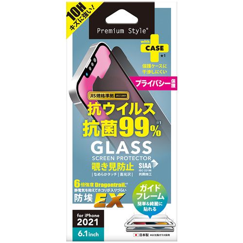 PGA PG-21KGLK03MB iPhone 13 13 Pro用 抗菌 抗ウイルス液晶保護ガラス Premium Style 覗き見防止