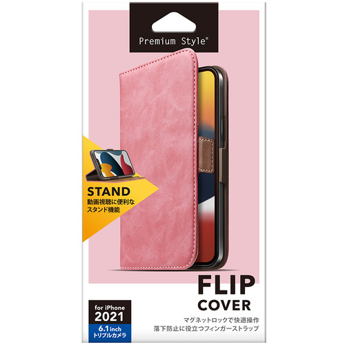 PGA PG-21NFP03PK iPhone 13 Pro用 フリップカバー Premium Style ダスティピンク