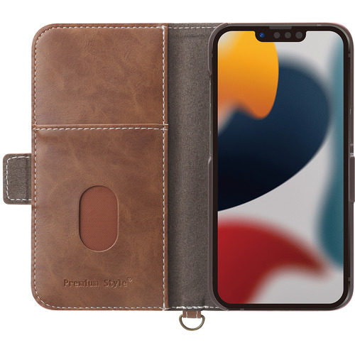 風合いの良い上質なPUレザー素材を使用したiPhone 13 Pro用 フリップカバーです。