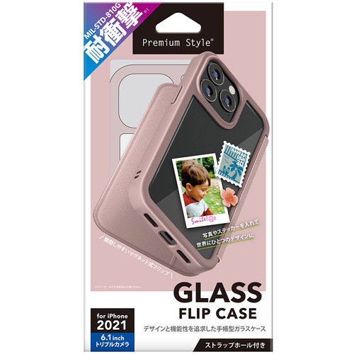 PGA PG-21NGF06PK iPhone 13 Pro用 ガラスフリップケース Premium Style ピンク