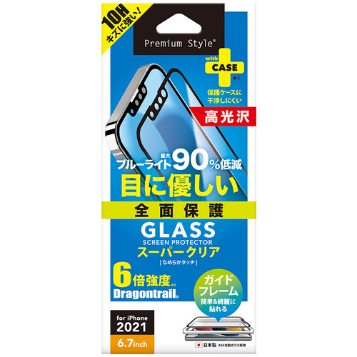PGA PG-21PGL03FBL iPhone 13 Pro Max用 液晶全面保護ガラス Premium Style ブルーライト低減/光沢
