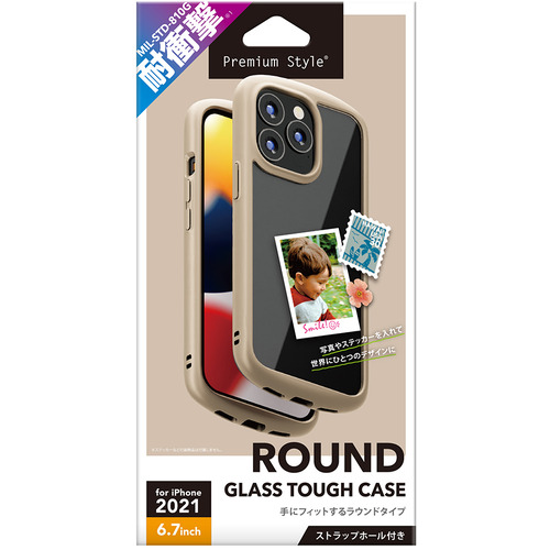 PGA PG-21PGT02BE iPhone 13 Pro Max用 ガラスタフケース ラウンドタイプ Premium Style ベージュ