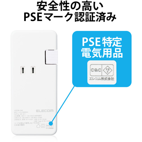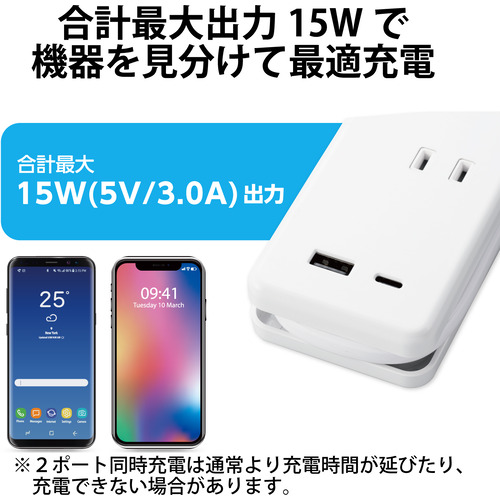 エレコム MOT-U13-2302WH USBタップ USB-C1ポート USB-A1ポート 15W AC3個口 ケーブル収納 ホワイト