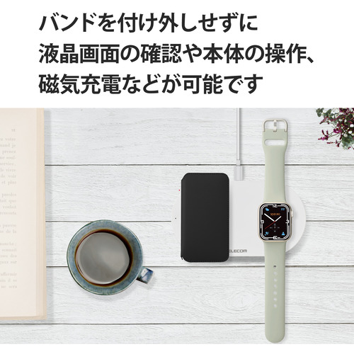 ●バンドをApple Watchに装着したままで液晶画面の確認、本体の操作、各種ボタン操作、純正の磁気充電ケーブルへの設置が可能です。