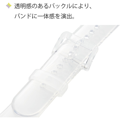 ●バンドと同じ透明感のあるバックルが、一体感を演出します。