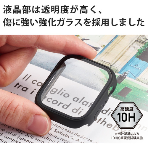 ●艶やかで透明度が高く傷に強い強化ガラスとポリカーボネート素材の2重構造で、Apple Watchの液晶部及び側面部を保護し傷や汚れから守るApple Watch Series 7 [45mm]用フルカバーケースです。
