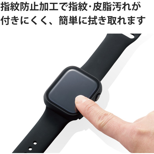 エレコム AW-21AFCGBK アップルウォッチ カバー ケース Series 7 [ 45mm ] フルカバー ハイブリッド 強化ガラス 硬度10H 全面保護 液晶 側面 指紋防止 飛散防止 2重構造 傷・汚れ防止 Apple Watch モデル番号[ A2474 等] ブラック