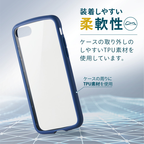 エレコム PM-A22STSLFCGNV iPhone SE 第3世代 SE 第2世代 8/7 ハイブリッドケース TOUGH SLIM LITE フレームカラー 背面クリア 背面ガラス ネイビー
