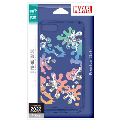 「MARVEL」キャラクターデザインの抗菌加工が施された2022年 iPhone 4.7inch用 抗菌ハイブリッドケースです。