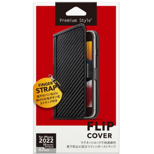 PGA PG-22MFP04BK 2022年 iPhone 4.7inch用 フリップカバー Premium Style カーボン調ブラック