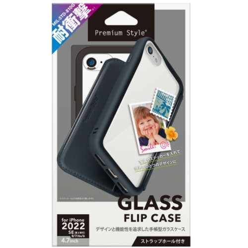 PGA PG-22MGF01BK 2022年 iPhone 4.7inch用 ガラスフリップケース Premium Style ブラック