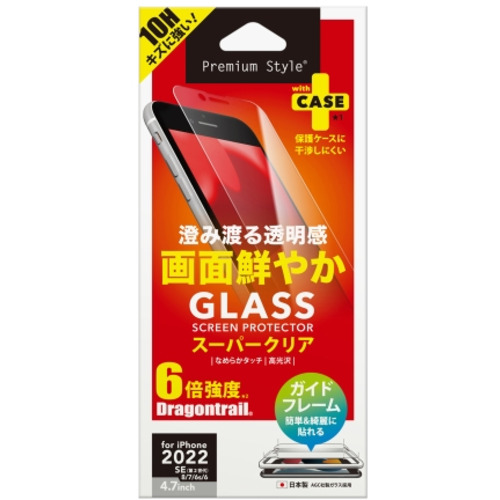 PGA PG-22MGL01CL 2022年 iPhone 4.7inch用 ガイドフレーム付 液晶保護ガラス Premium Style スーパークリア