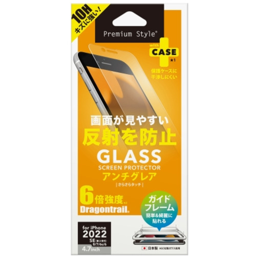 PGA PG-22MGL02AG 2022年 iPhone 4.7inch用 ガイドフレーム付 液晶保護ガラス Premium Style アンチグレア