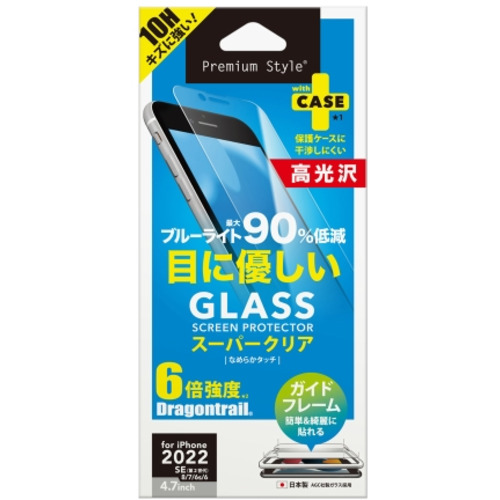 PGA PG-22MGL03BL 2022年 iPhone 4.7inch用 ガイドフレーム付 液晶保護ガラス Premium Style ブルーライト低減/光沢