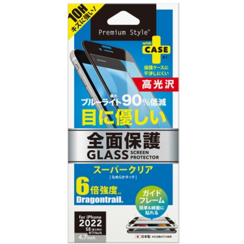 PGA PG-22MGL03FBL 2022年 iPhone 4.7inch用 ガイドフレーム付 液晶全面保護ガラス Premium Style ブルーライト低減/光沢