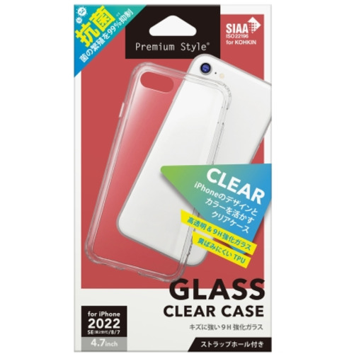 PGA PG-22MGT05CL 2022年 iPhone 4.7inch用 抗菌ガラスハイブリッドケース Premium Style クリア