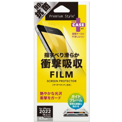 PGA PG-22MSF01 2022年 iPhone 4.7inch用 ガイドフレーム付 液晶保護フィルム Premium Style 衝撃吸収/光沢