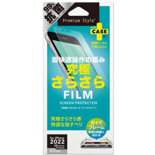 PGA PG-22MTA01 2022年 iPhone 4.7inch用 ガイドフレーム付 液晶保護フィルム Premium Style 究極さらさら