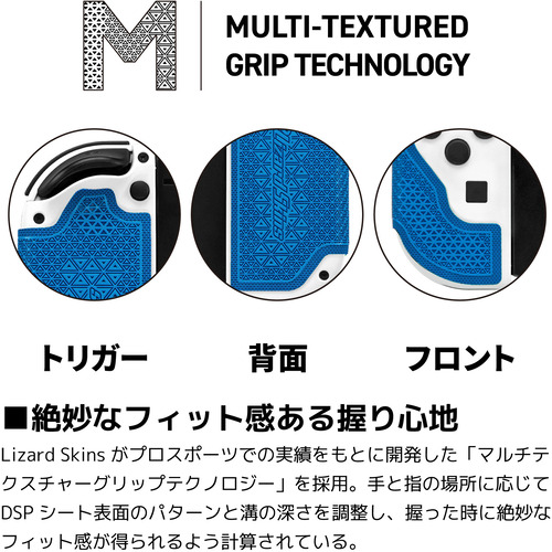 Lizard Skinsがプロスポーツでの実績をもとに開発した「マルチテクスチャーグリップテクノロジー」を採用。