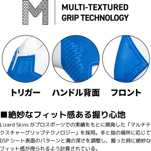 Lizard Skinsがプロスポーツでの実績をもとに開発した「マルチテクスチャーグリップテクノロジー」を採用。