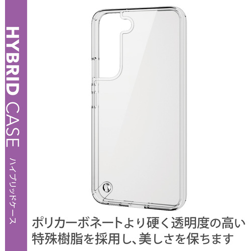 ●側面に弾力性のあるTPU素材を、背面に強じんで透明度の高いポリカーボネート素材を使用した、スリムなスタイルのGalaxy S22(SC-51C/SCG13)用ハイブリッドケースです。