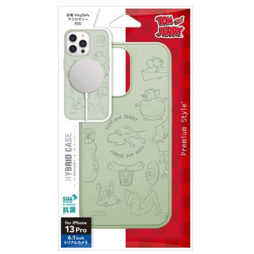 PGA PG-WMGPT21N01TAJ iPhone 13 Pro用 MagSafe対応 抗菌ハイブリッドケース Premium Style トムとジェリー/グリーンPGWMGPT21N01TAJ