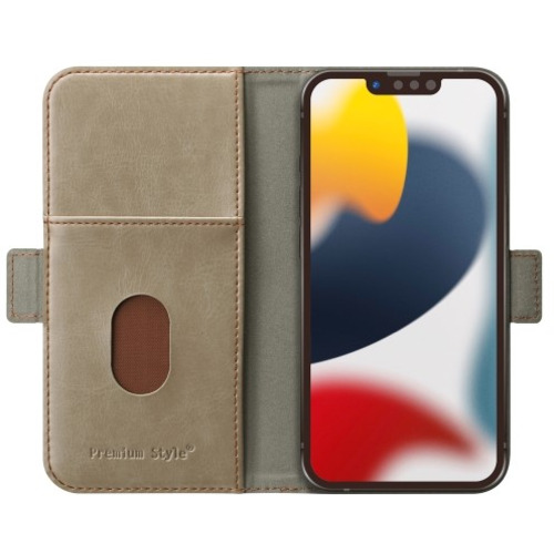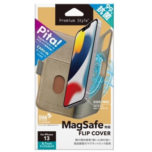 PGA PG-21KMGFP02BE iPhone 13用 MagSafe対応 抗菌フリップカバー Premium Style ベージュPG21KMGFP02BE