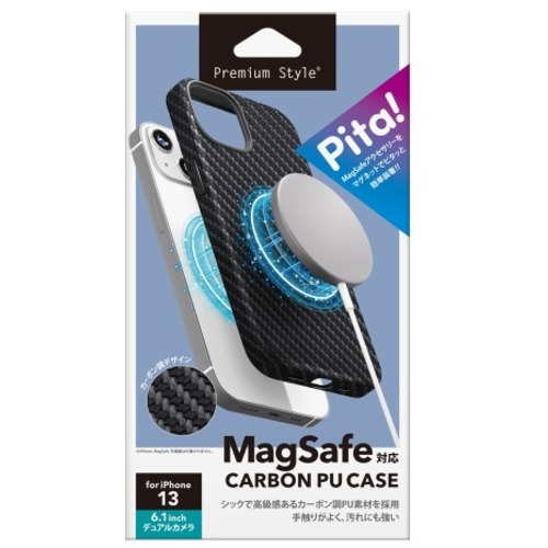 PGA PG-21KMGPU02BK iPhone 13用 MagSafe対応 PUレザーケース Premium Style カーボン調ブラックPG21KMGPU02BK