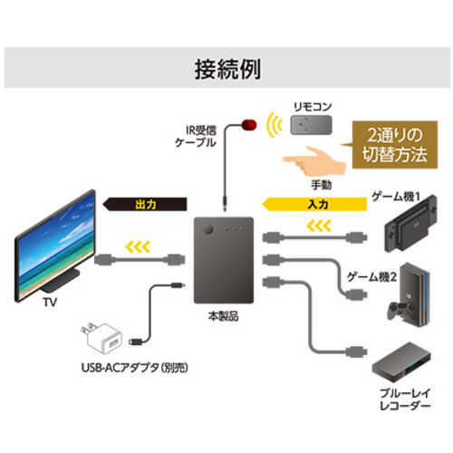 それぞれの機器を接続時、都度HDMIケーブルを抜き挿しする必要がありません。