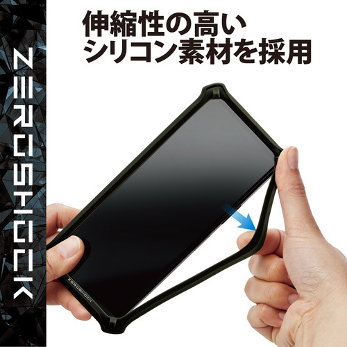 ●衝撃から守る!伸縮して様々なスマートフォンにフィットするZEROSHOCKシリコンバンパー。
