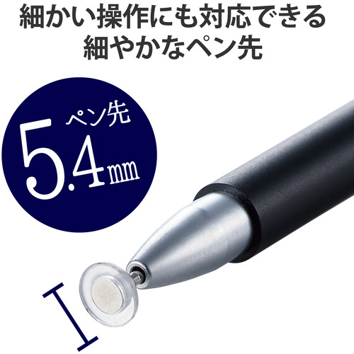 ●ペン先直径が5.4mmで、細かい操作も快適にできるスマートフォン用スリムタッチペンです。