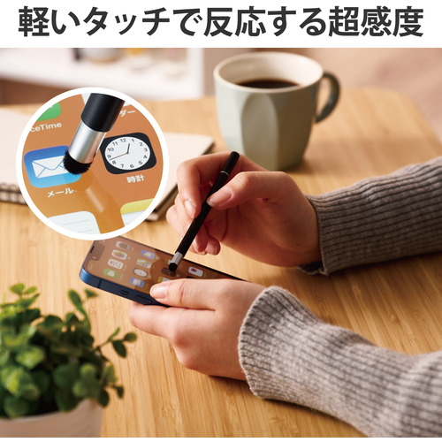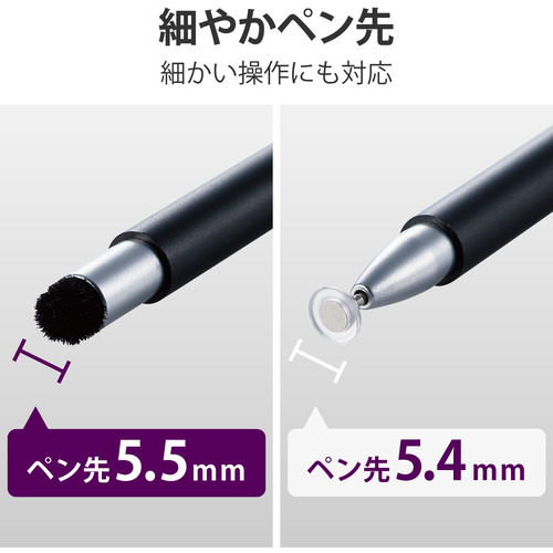 ●ペン先直径が5.5mm(超感度タイプ)と5.4mm(ディスクタイプ)で、繊細な操作に適したスマートフォン用スリムタッチペンです。