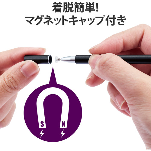 エレコム P-TPSLIM2WYBK スマートフォン・タブレット用スリムタッチペン 超感度タイプ ディスクタイプ マグネットキャップ付き ブラック