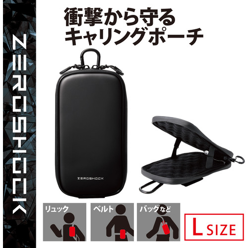 エレコム P-05CZBK スマートフォン用キャリングポーチ ZEROSHOCK カラビナ付き ベルトループ 3WAY装着 シングルポケット Lサイズ ブラック