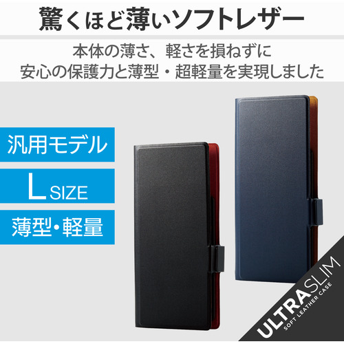 エレコム P-05PLFUSBK スマートフォン用マルチレザーケース スライド式 手帳型 UltraSlim 薄型 磁石付き Lサイズ ブラック P05PLFUSBK